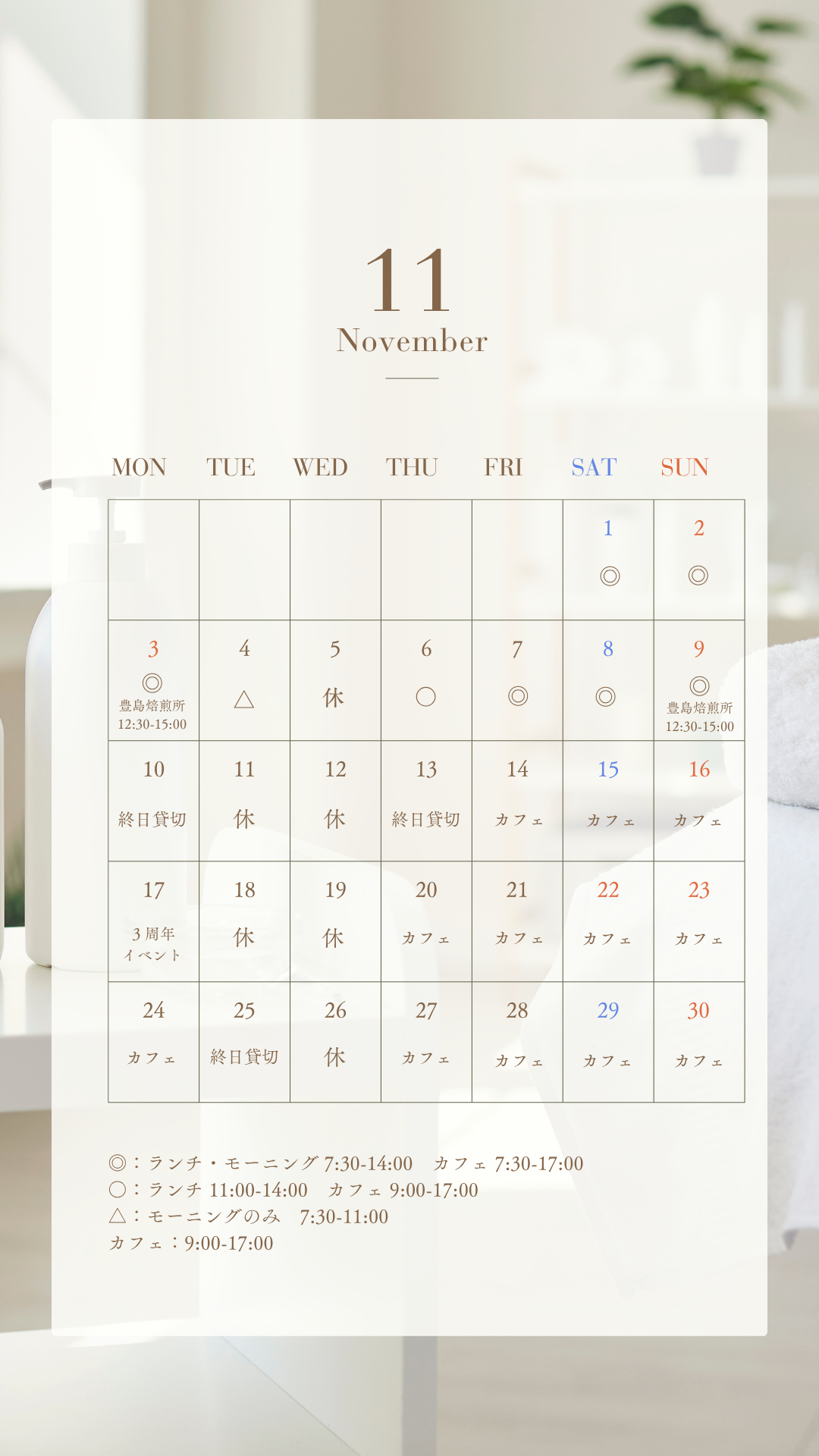 🗓️ 11月の営業カレンダー